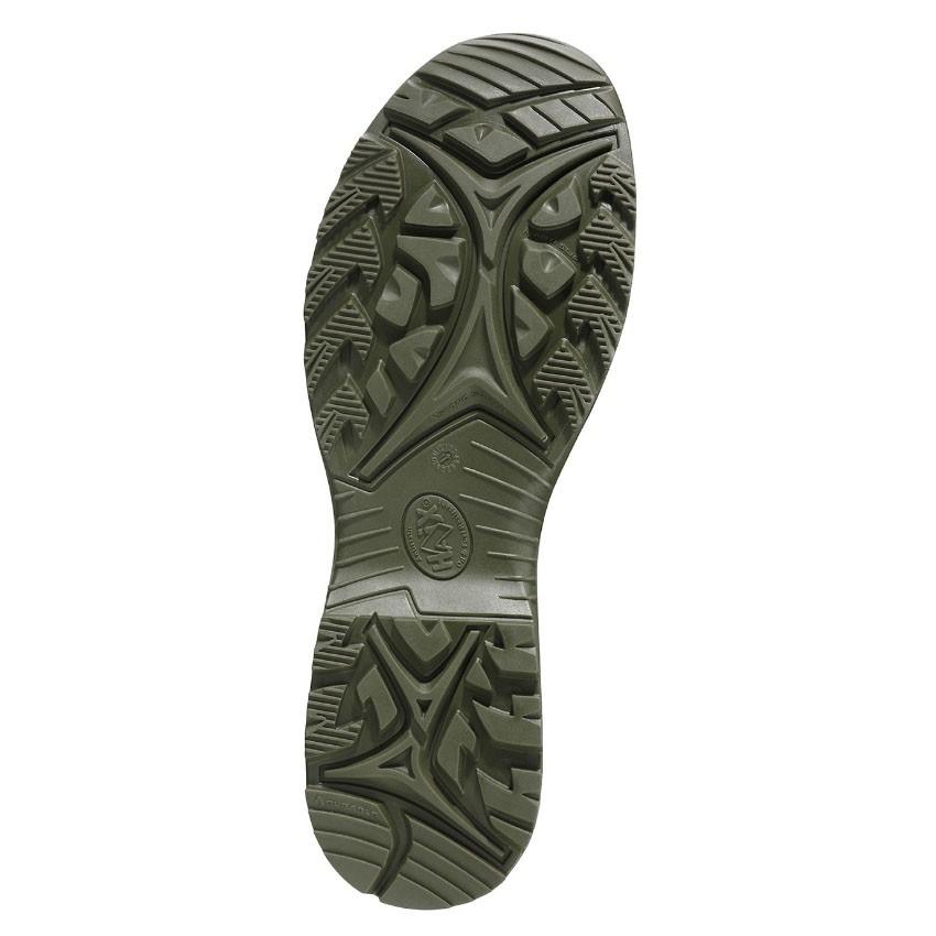 Το εξωτερικό μέρος της σόλας είναι κατασκευασμένο από μία ιδιαίτερα ανθεκτική σύνθεση καουτσούκ, αντιστατική, που αποτρέπει την εισχώρηση νερού, είναι ανθεκτική ενάντια σε χημικά, λάδια και καύσιμα (FO), παρέχει μόνωση από το κρύο (CI) αλλά και από τη ζέστη (HI) ενώ αντέχει σε θερμοκρασίες 300˚C για 60 δευτερόλεπτα (HRO). Tο ενδιάμεσο μέρος είναι ένα στρώμα σκληρής πολυουρεθάνης (PU) με ζώνη σταθεροποίησης για βελτιστοποιημένη διανομή πίεσης σε ανισόπεδες επιφάνειες και απορρόφηση της πίεσης από εξωτερικούς παράγοντες, όπως πέτρες. Το τρίτο μέρος είναι από ελαστικό αφρό πολυουρεθάνης και προσφέρει άνετο πάτημα και άριστη απορρόφηση κραδασμών σε κάθε βήμα.
