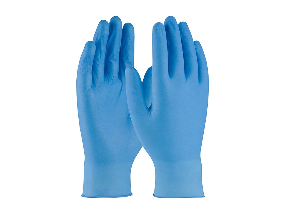 Μπλε γαντια νιτριλίου, μίας χρήσης, φτιαγμένα από 100% συνθετικό νιτρίλιο.