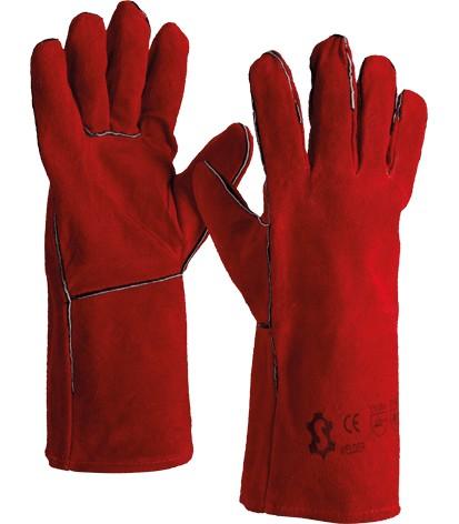 Γάντι συγκόλλησης σε κόκκινο χρώμα, πλήρως επενδυμένο, μήκους 35cm.