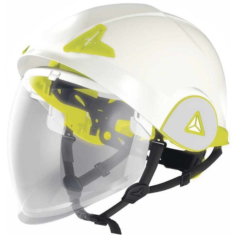 ABS κράνος με διπλό κέλυφος με αποσπώμενη προσωπίδα PC. Δυναμική σχεδίαση και αθλητική. 3 ταινίες με 6 σημεία πρόσδεσης. Σφουγγάρι Basane. Ρυθμιζόμενη: περίμετρος κεφαλής 53 έως 63 cm με το κουμπί One-D Rotor. 2 πιθανές θέσεις της περιφέρειας της κεφαλής (υψηλή / χαμηλή) για καλύτερη άνεση. Αντικατοπτριστικό αυτοκόλλητο. Ηλεκτρική απομόνωση σε τάση 1000 VAC/1500 VDC, τάση προστασίας από τόξο 1 (GS-ET 29). Επεξεργασμένο αντιθαμβωτικό προστατευτικό κάλυμμα Ν και αντιθαμβωτικό K με προστασία από ηλεκτρικά τόξα και προεξοχές τετηγμένων μετάλλων και θερμών υγρών.