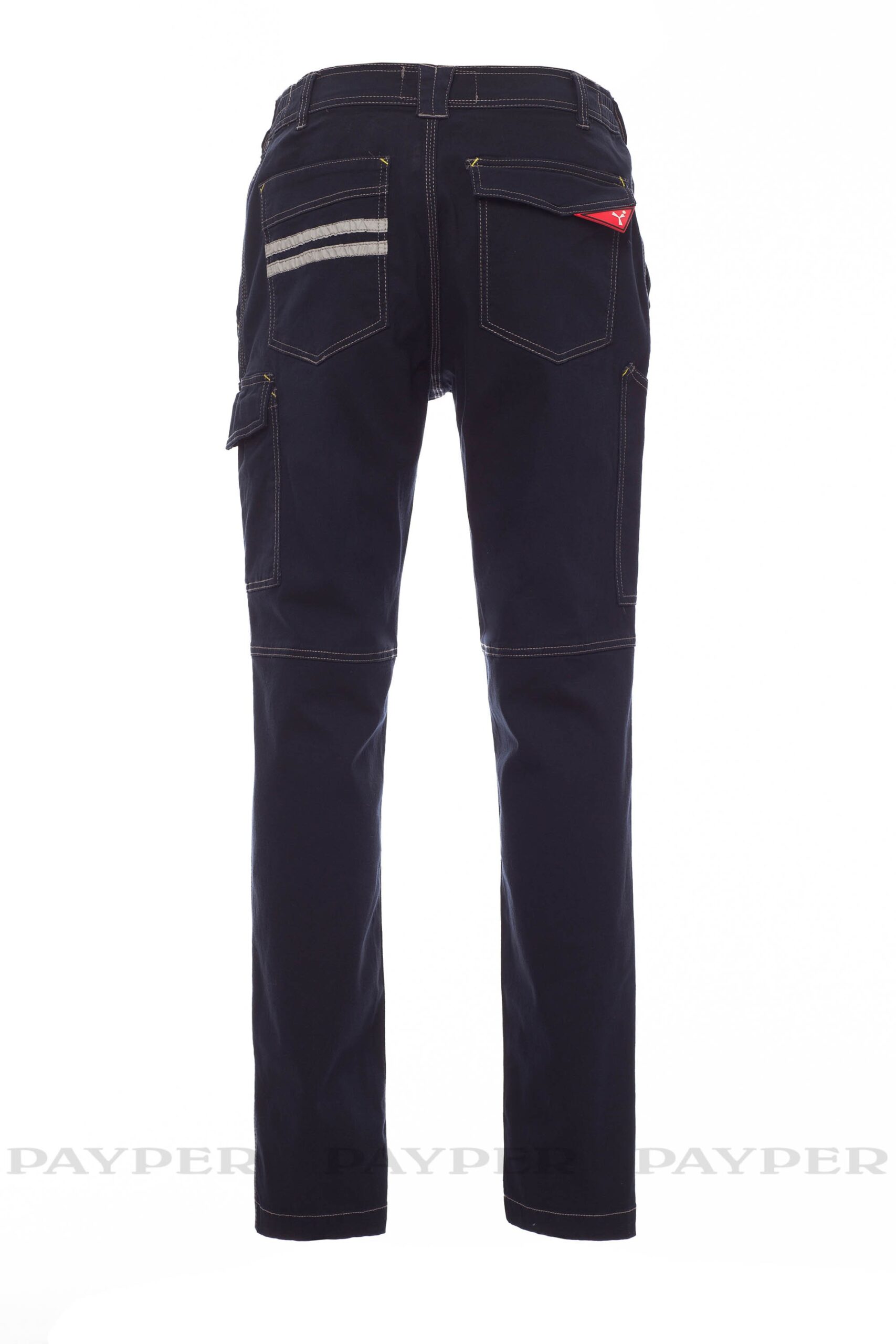 τριπλές ραφές στον καβάλο και στο εσωτερικό πόδι Ραφές και ένθετα με αντίθεση, αντανακλαστικές ρίγες στην πίσω τσέπη, τριπλές ραφές.