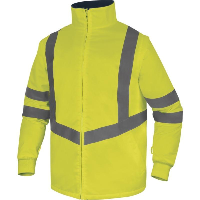 Παρκά 5 σε 1. Παρκά βροχής: Ραφές στεγανές. Κλείσιμο με φερμουάρ προστασίας με Διπλό φερμουάρ από το ψύχος με αυτί προστασίας που κλείνει με σκρατς. Ρυθμιζόμενες μανσέτες με Velcro. 3 τσέπες με 1 εσωτερική με φερμουάρ. Υψηλή ορατότητα : Κλάση 3 – Παράλληλη και διαγώνια συναρμολόγηση. Αποσπώμενο σακάκι : Αφαιρούμενα μανίκια. Ραφές στεγανές. Κλείσιμο με φερμουάρ. Περικάρπιο με λάστιχο. 3 τσέπες με 1 εσωτερική με φερμουάρ. Υψηλή ορατότητα : Κλάση 3 – Διαγώνια συναρμολόγηση.