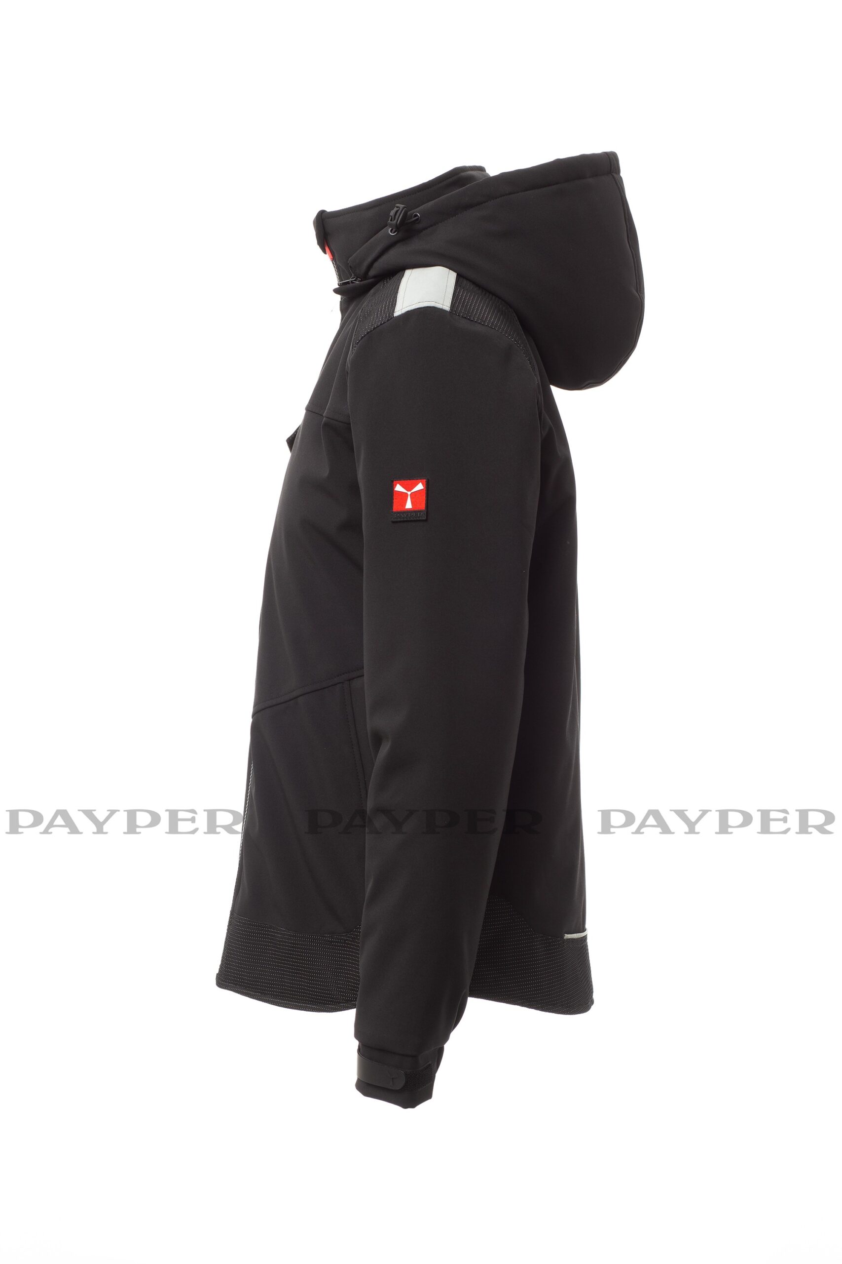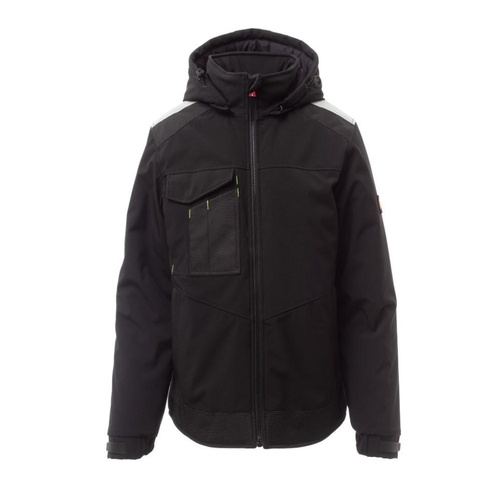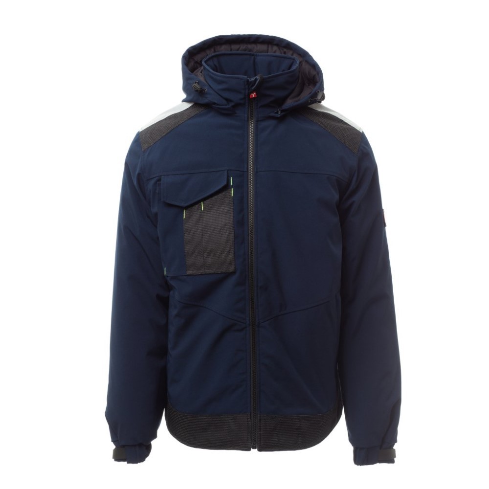 Ρυθμιζόμενη και αποσπώμενη κουκούλα με κορδόνι περίσφιξης. Ανακλαστική ταινία στους ώμους. Ελαστικές μανσέτες, ρυθμιζόμενες με Velcro. Τσέπη στήθους Lock System με πτερύγιο και θήκη για στυλό. Δύο πλαϊνές τσέπες κλειστές με φερμουάρ. Δύο εσωτερικές τσέπες, μία τσέπη για tablet κλειστή με Velcro και μία διαμορφωμένη τσέπη στο στήθος με φερμουάρ στα δεξιά. Ρυθμιζόμενο κάτω μέρος με προσαρμοσμένα πώματα και ανακλαστικές σωληνώσεις στο πίσω μέρος.